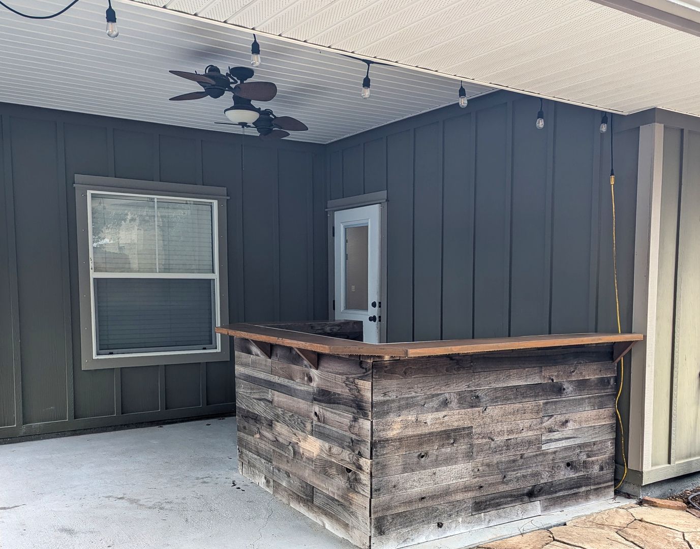 Backyard oasis with a bar on the patio—perfect for entertaining