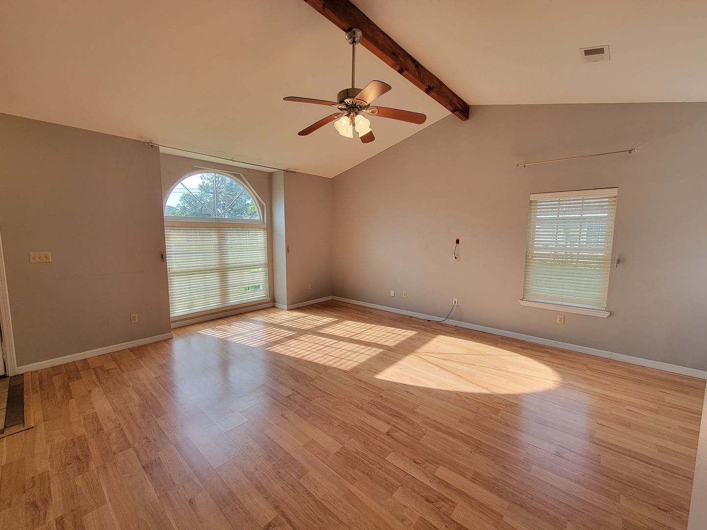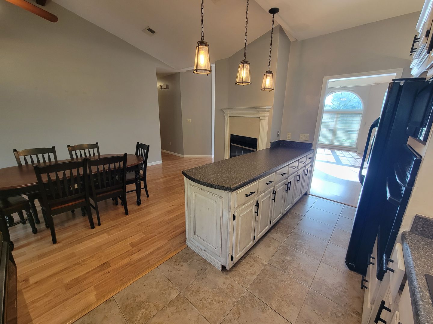 Welcome home to this serene east Navarre setting where you'll find an adorable all brick 3 bedroom/2 bath home on a half acre lot! Walk up the drive and admire the well maintained yard and inside immediately appreciate the vaulted beamed ceilings in the living room and kitchen, as well as the two sided fireplace! Hard surface flooring extends throughout! With large windows and natural sunlight pouring in, you'll love cooking in your kitchen with plenty of room for the entire family to enjoy sitting down together!