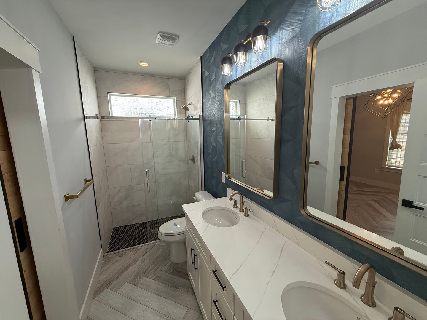 The home includes three spacious bedrooms with ample closet space, along with two beautifully finished bathrooms featuring updated fixtures and clean, modern finishes. Large windows throughout the home allow for plenty of natural light, creating a warm and inviting atmosphere.