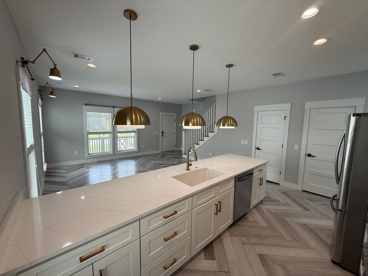 Beautiful newer construction 3-bedroom, 2-bath home located just minutes from downtown, offering both convenience and modern comfort. This well-maintained property features stylish fixtures, attractive flooring, and a bright, open living space perfect for everyday living and entertaining. The kitchen flows nicely into the main living area and offers plenty of cabinet and counter space.