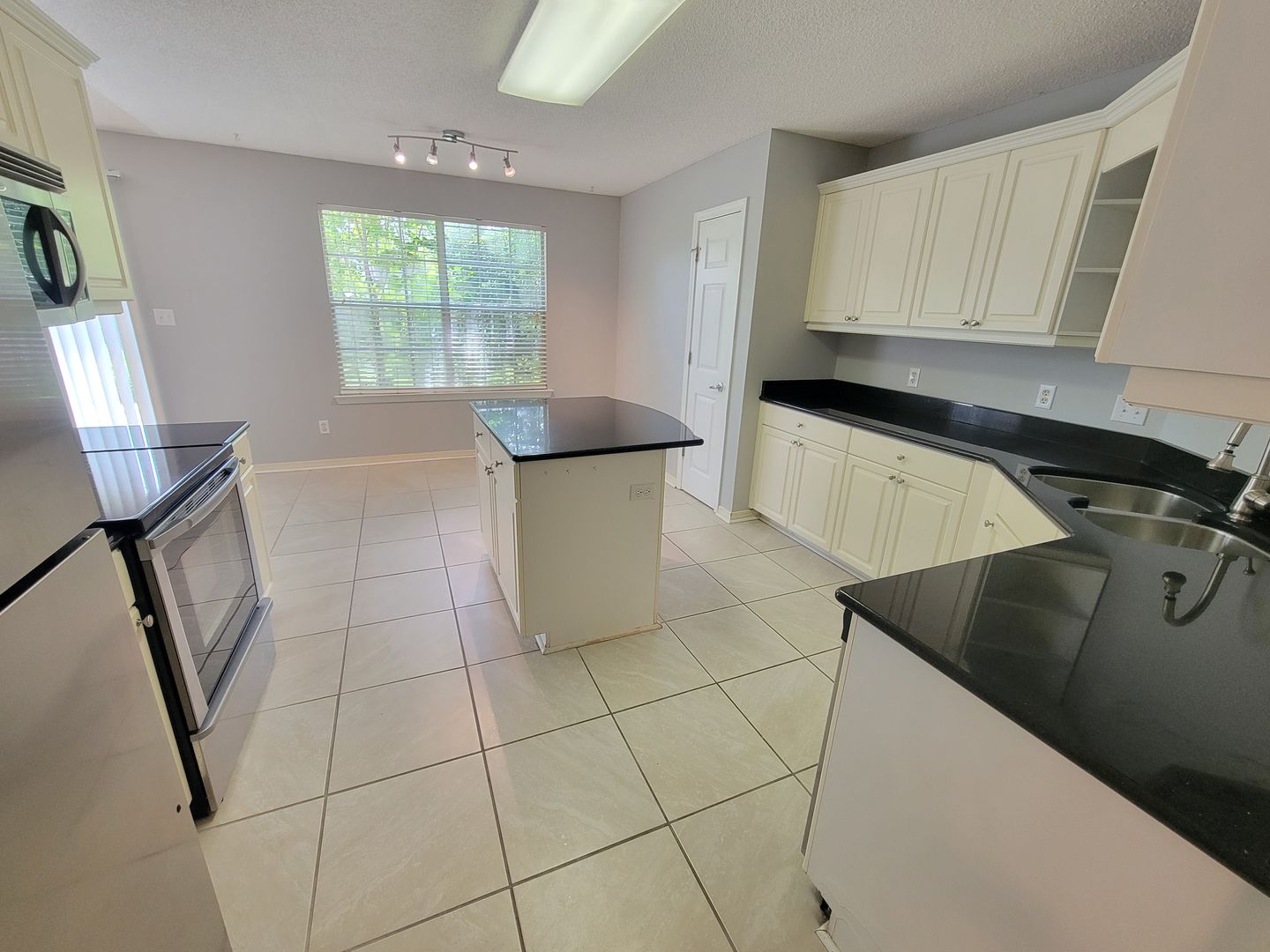 The spacious living room features vaulted ceilings and plant ledges, creating an open and airy feel. The large eat in kitchen is designed for both everyday living and entertaining, complete with upgraded beveled edge countertops, stainless steel appliances, kitchen island, pantry, counter uplighting, and breakfast nook. There is also a separate formal dining room with a large window for additional natural light.