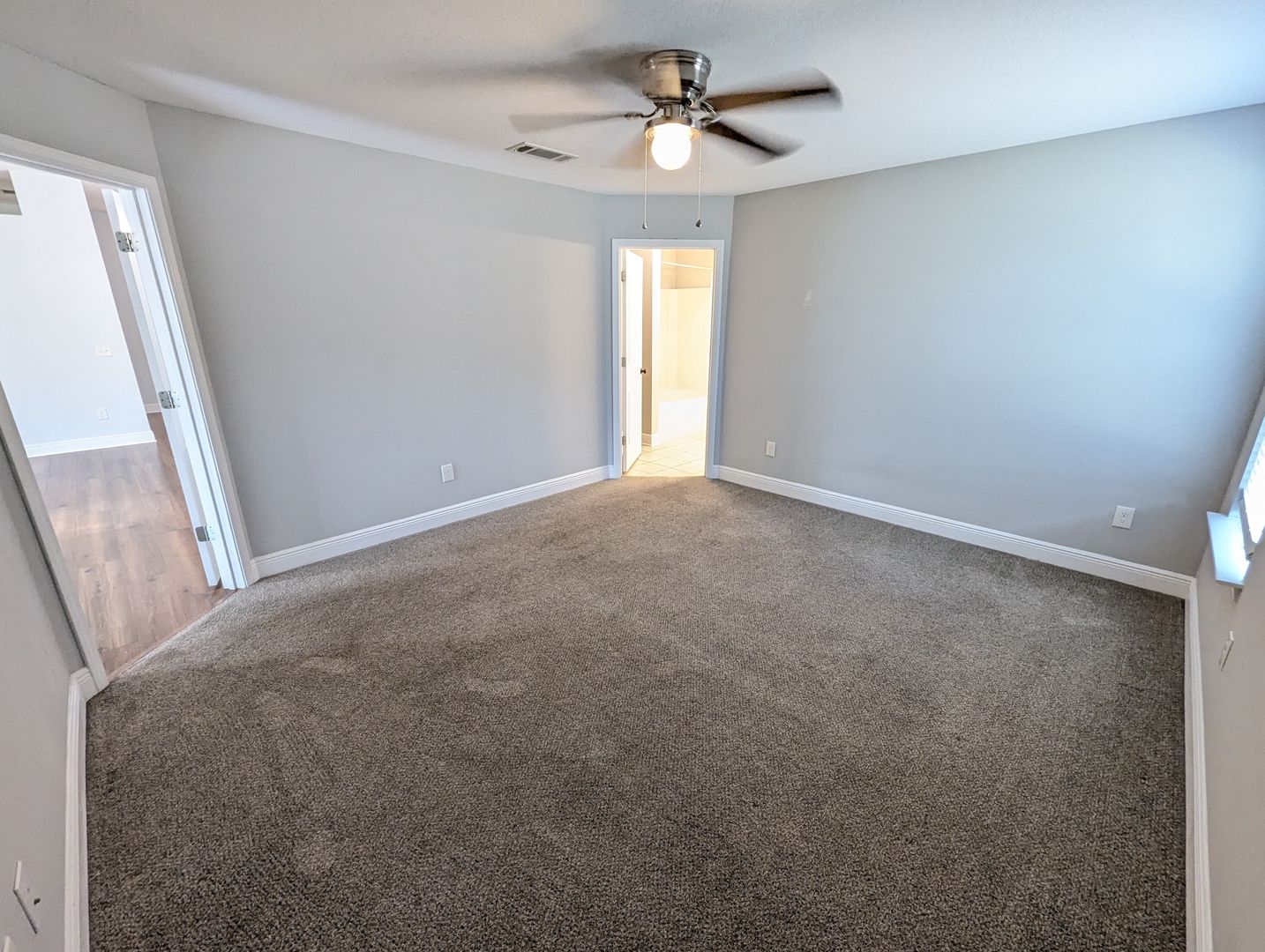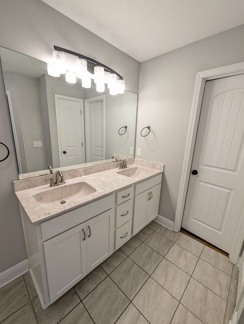 The large primary suite offers a peaceful retreat with double vanities and a convenient shower/tub combination. Master bathroom closet features built-in to help with organization. Two additional bedrooms and a second full bathroom provide plenty of space for family, guests, or a home office.